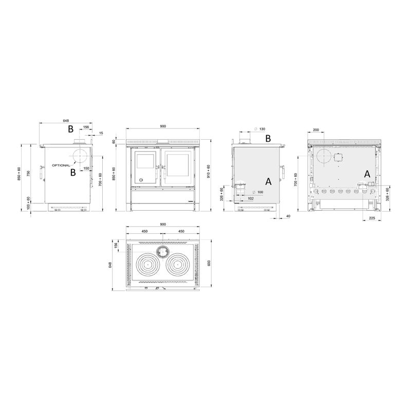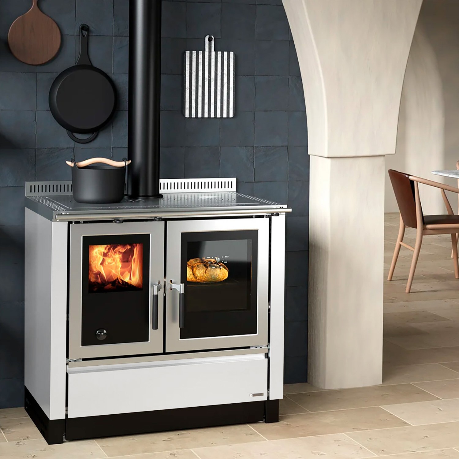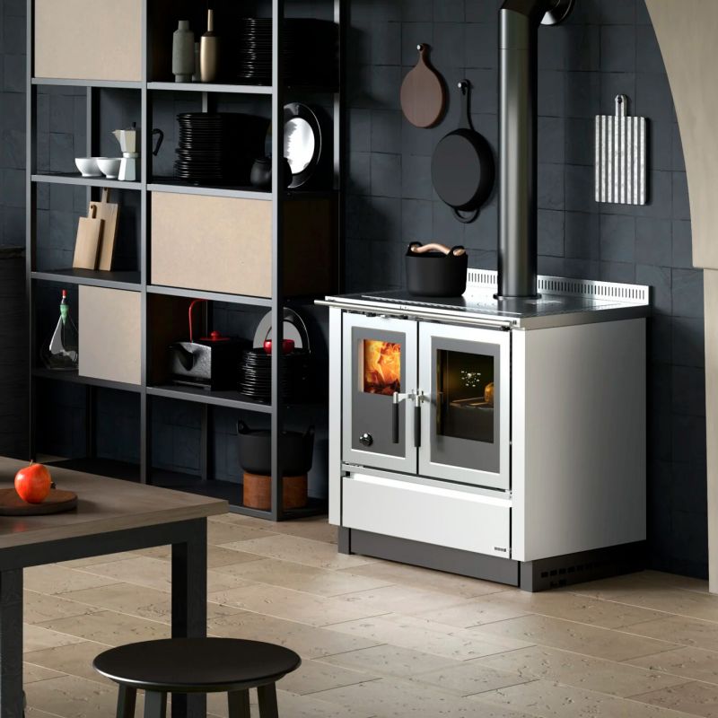 Küchenherd – La Nordica Venezia, schwarz mit Stahlblechverkleidung weiß